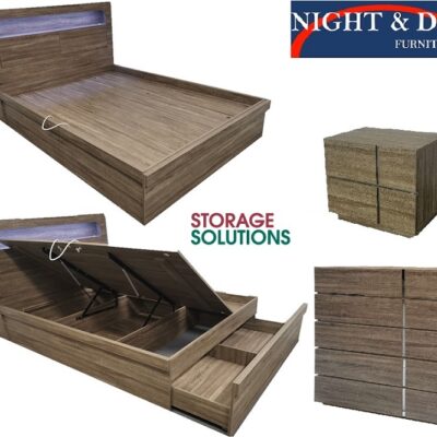 : bedroom_Suite – Mogo Queen Gas lift storage Bedtoom suite 3pce bed 2 bedside Touch light & usb Port Oak