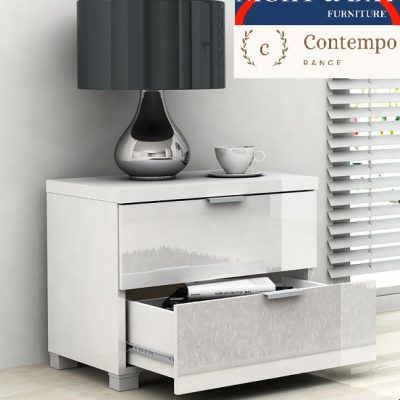 : Bedside – Kyana 2 drawer Bedside chest side table CONTEMPO RANGE Gloss White