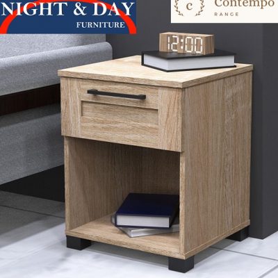 : Bedside – Montreal Bedside chest Lamp Side Table 1 drawer 1 shelf oak CONTEMPO RANGE