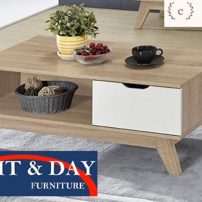 Bergen 1 drawer Coffee cupboard Table CONTEMPO RANGE two tone white and oak