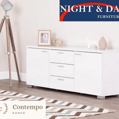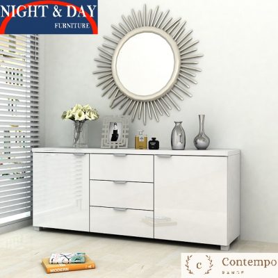 :Buffet – 2 Door 3 Drawer Gloss White Buffet Chest Kyana – CONTEMPO RANGE