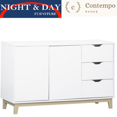 :Buffet – Tarin 1 drawer 2 door buffet sideboard adjustable storage CONTEMPO RANGE White