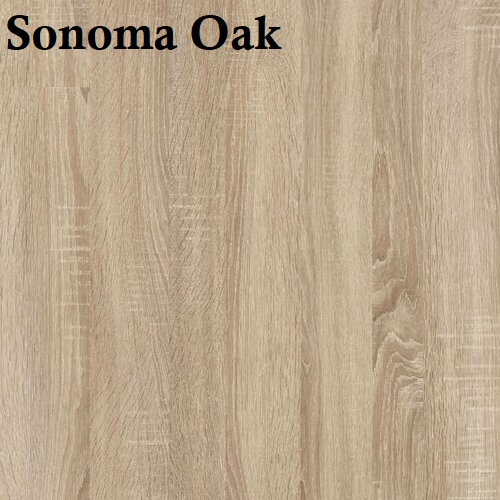 White Colour has matching silver handles and the Sonoma oak has matching timber handles