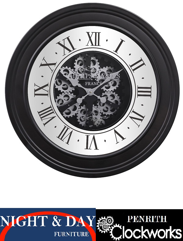 :Skeleton_clock- Paris mirrored 80 cm EXPOSED GEAR CLOCK – Black