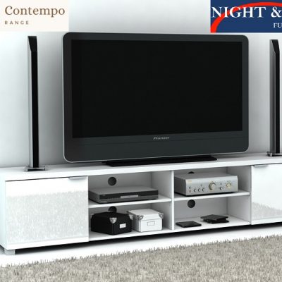 :Entertainment_unit – Kyana 4 Compartments 2 Door Entertainment TV Unit Gloss White 2m CONTEMPO RANGE