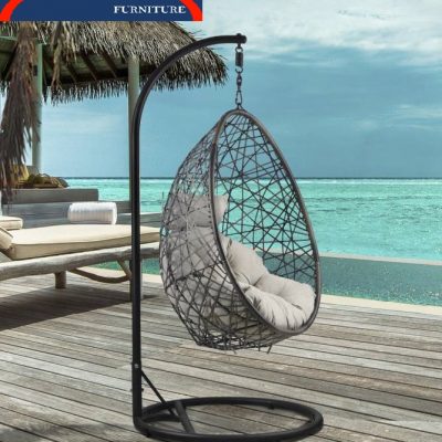 :EGG_CHAIR – VISTA POD EGG ACCENT OUTDOOR CHAIR STEEL FRAME DARK GREY CUSIONS INC